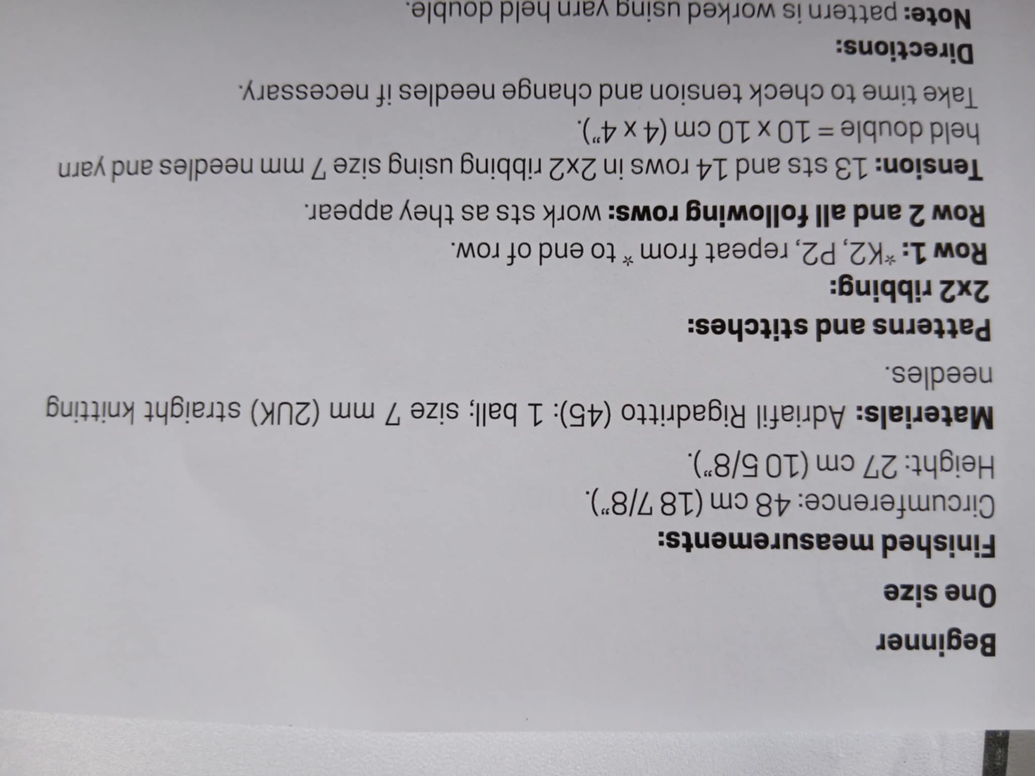 Skill level: Beginner. Very easy, just 2x2 rib throughout (full details on pattern).
