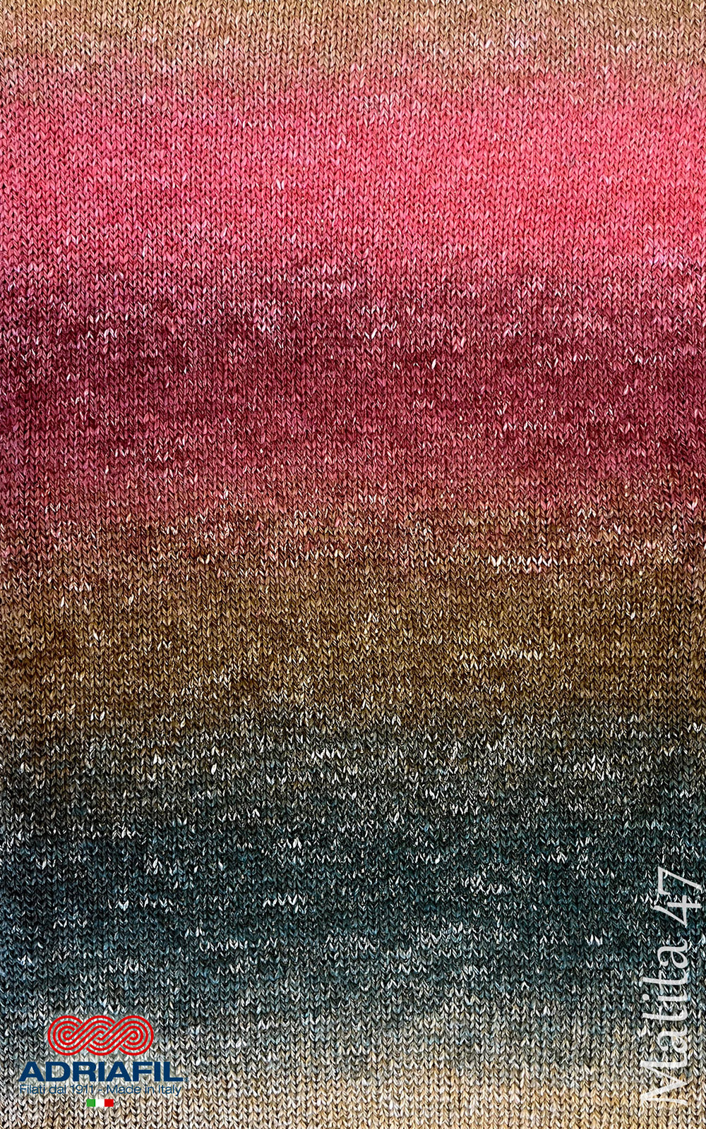 This is a truly lovely yarn - 76% cotton, 24% hemp, with a naturally heathered appearance, slightly slubby and beautiful lonnnnnnnng colour changes. The yarn only goes through one full colour change per ball and the colours are gorgeous. Adriafil also remind us that these fibres are naturally antibacterial and breathable.